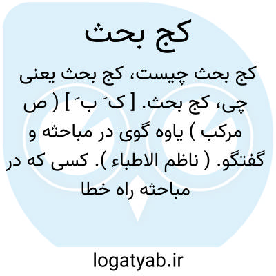 ( صفت ) کسی که در مباحثه راه خطا رود و بیهوده گوید: [ مهر خاموشی حصار ی شد ز کج بحثان مرا ماهی لب بسته را اندیشه از قب نیست ]. ( صائب )
