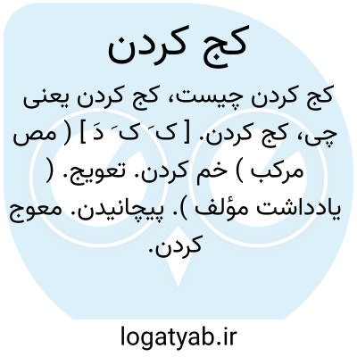 کج کردن. [ ک َ ک َ دَ ] ( مص مرکب ) خم کردن. تعویج. ( یادداشت مؤلف ). پیچانیدن. معوج کردن. خمانیدن. خم دادن. ( فرهنگ فارسی معین ). خل کردن. دوتا کردن. دولا کردن: شاخس الشعاب الصدع؛ کج کرد کاسه دوز شکاف را پس التیام نپذیرفت. ( منتهی الارب ). - کج کردن راه؛ از راه بگردیدن. از سوی دیگر رفتن. از راه اول منحرف شدن و به راه دیگر روی آوردن. - کج کردن گردن؛ خم کردن گردن بعلامت تقاضا و خواهش: پی زر کج نکنم گردن خود چون نرگس خرقه بر خرقه ازان دوخته ام همچو بصل.وحشی.
