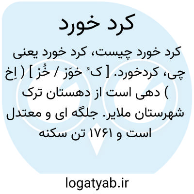 کردخورد. [ ک ُ خوَرْ / خُرْ ] ( اِخ ) دهی است از دهستان ترک شهرستان ملایر. جلگه ای و معتدل است و 1761 تن سکنه دارد. آب آنجا از قنات و محصول آن انگور و صیفی است. شغل اهالی زراعت و صنایع دستی زنان آنجا قالی بافی است. ( از فرهنگ جغرافیایی ایران ج 5 ).