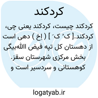 کردکند.[ ک ُ ک َ ] ( اِخ ) دهی است از دهستان کل تپه فیض اﷲبیگی بخش مرکزی شهرستان سقز. کوهستانی و سردسیر است و 150 تن سکنه دارد. ( از فرهنگ جغرافیایی ایران ج 5 ).
