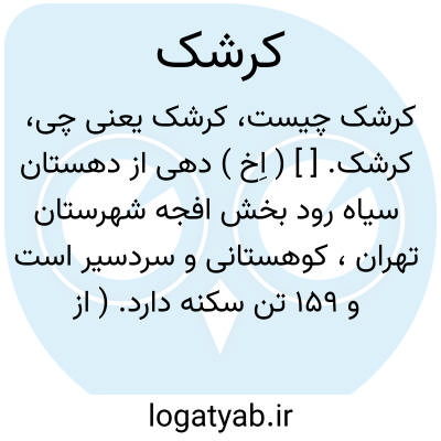 کرشک. [ ] ( اِخ ) دهی از دهستان سیاه رود بخش افجه شهرستان تهران، کوهستانی و سردسیر است و 159 تن سکنه دارد. ( از فرهنگ جغرافیایی ایران ج 1 ).