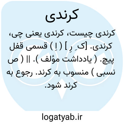 کرندی. [ک ِ رِ ] ( اِ ) قسمی قفل پیچ. ( یادداشت مؤلف ). || ( ص نسبی ) منسوب به کرند. رجوع به کرند شود.
