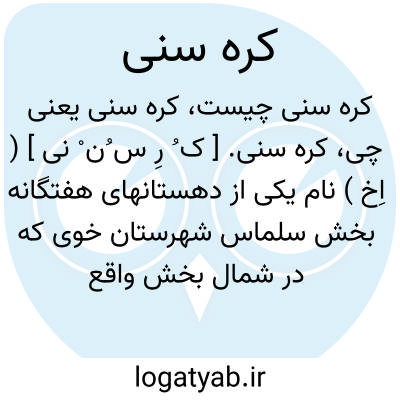 کره سنی. [ ک ُ رِ س ُن ْ نی ] ( اِخ ) نام یکی از دهستانهای هفتگانه بخش سلماس شهرستان خوی که در شمال بخش واقع شده است. حدود آن: از شمال به دهستان رهال و قطور، از جنوب به چهریق و حومه سلماس، از خاور به حومه سلماس و از باختر به مرز ایران و ترکیه محدود می باشد. کوهستانی و معتدل است. از 15 آبادی بزرگ و کوچک تشکیل شده و 2680 تن سکنه دارد. ده های عمده آن عبارتند از: اوریان، چهارستون، وردان، سیلاب و سره. نام دهستان از نام طایفه کره سنی گرفته شده و مرکز آن قریه سیلاب می باشد. ( از فرهنگ جغرافیایی ایران ج 4 ).