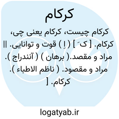 کرکام. [ ک َ ] ( اِ ) قوت و توانایی. || مراد و مقصد.( برهان ) ( آنندراج ). مراد و مقصود. ( ناظم الاطباء ).