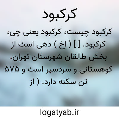 کرکبود. [ ] ( اِخ ) دهی است از بخش طالقان شهرستان تهران. کوهستانی و سردسیر است و 575 تن سکنه دارد. ( از فرهنگ جغرافیایی ایران ج 1 ).