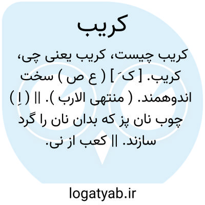 کریب. [ ک َ ] ( ع ص ) سخت اندوهمند. ( منتهی الارب ). || ( اِ ) چوب نان پز که بدان نان را گرد سازند. || کعب از نی. || زمین کشتکار شیار کرده. ( منتهی الارب ) ( آنندراج ).
