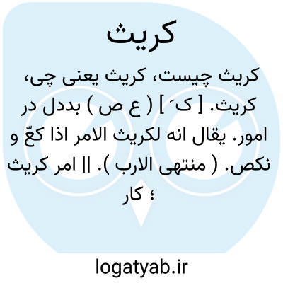 کریث. [ ک َ ] ( ع ص ) بددل در امور. یقال انه لکریث الامر اذا کعّ و نکص. ( منتهی الارب ). || امر کریث؛ کار در اندوه اندازنده. ( منتهی الارب ) ( آنندراج ).