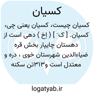 کسیان. [ ک َ ] ( اِخ ) دهی است از دهستان چایپار بخش قره ضیاءالدین شهرستان خوی، دره و معتدل است و313تن سکنه دارد. ( از فرهنگ جغرافیایی ایران ج 4 ).
