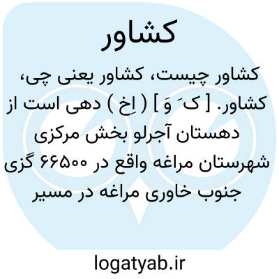کشاور. [ ک َ وَ ] ( اِخ ) دهی است از دهستان آجرلو بخش مرکزی شهرستان مراغه واقع در 66500 گزی جنوب خاوری مراغه در مسیر شوسه ٔشاهین دژ به میاندوآب. با 764تن سکنه. آب آن از زرینه رود و دو چشمه و محصول آن غلات و چغندر و بادام و حبوبات و شغل اهالی زراعت است. راه آن شوسه و مرکز دهستان آجرلو می باشد. ( از فرهنگ جغرافیایی ایران ج 4 ).