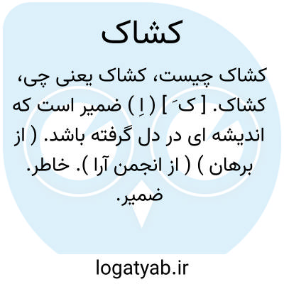 کشاک. [ ک َ ] ( اِ ) ضمیر است که اندیشه ای در دل گرفته باشد. ( از برهان ) ( از انجمن آرا ). خاطر. ضمیر. اندیشه. تصور. هرآنچه در دل گرفته باشند. ( ناظم الاطباء ). || در اصطلاح صرف و نحو کلمه ای است که به تازی ضمیر می گویند. ( ناظم الاطباء ).