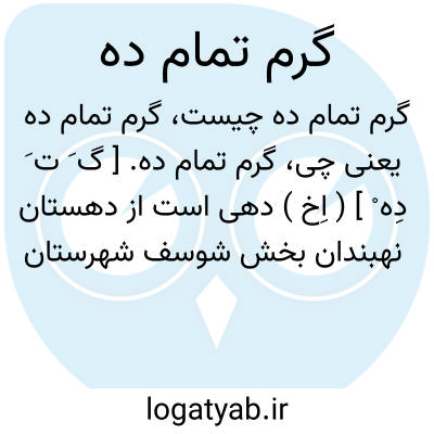 گرم تمام ده. [ گ َ ت َ دِه ْ ] ( اِخ ) دهی است از دهستان نهبندان بخش شوسف شهرستان بیرجند واقع در 43 هزارگزی شمال خاوری شوسف و 3 هزارگزی خاور شوسه مشهد به زاهدان. هوای آن گرم دارای 954 تن سکنه است. آب آنجا از قنات تأمین میشود و محصول آن لبنیات و شغل اهالی زراعت و مالداری. راه آن مالرو است. مزرعه گرم داروجزء این ده است. ( از فرهنگ جغرافیایی ایران ج 9 ).