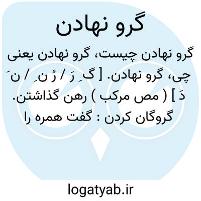 ( مصدر ) چیزی را بعنوان رهن نزد کسی گذاشتن: گفت همره را: گرو نه پیش من ورنه قربانی تو اندر کیش من ( مثنوی )