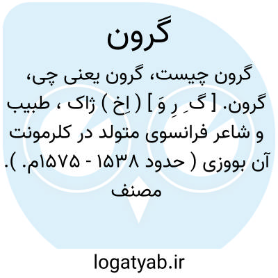 گرون. [ گ ِ رِ وَ ] ( اِخ ) ژاک، طبیب و شاعر فرانسوی متولد در کلرمونت آن بووزی ( حدود 1538 - 1575م. ). مصنف کمدیها و تراژدیها است.