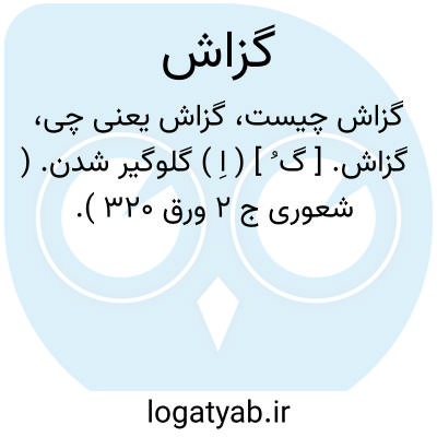 گزاش. [ گ ُ ] ( اِ ) گلوگیر شدن. ( شعوری ج 2 ورق 320 ).