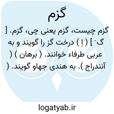 گزم. [ گ َ ] ( اِ ) درخت گز را گویند و به عربی طرفاء خوانند. ( برهان ) ( آنندراج ). به هندی جهاو گویند. ( غیاث ). رجوع به گز و طرفا شود.
