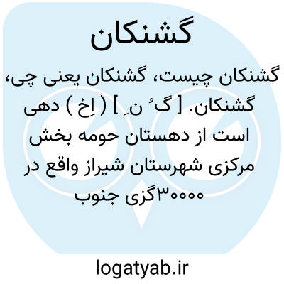 گشنکان. [ گ ُ ن ِ ] ( اِخ ) دهی است از دهستان حومه بخش مرکزی شهرستان شیراز واقع در 30000گزی جنوب خاوری شیراز. هوای آن معتدل و دارای 655 تن سکنه است. آب آنجا از چاه و محصول آن غلات، پنبه و تنباکو است. راه فرعی به شیراز دارد. شغل اهالی آنجا زراعت است و در دو محل گشنکان بالا و پائین سکونت دارند. گشنکان بالا دارای 353 تن سکنه است. ( از فرهنگ جغرافیایی ایران ج 7 ).