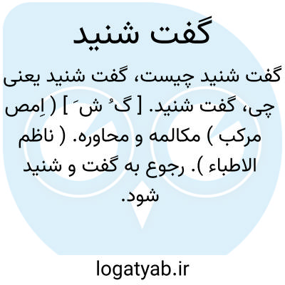 لغت نامه دهخدا گفت شنید. [ گ ُ ش َ ] ( اِمص مرکب ) مکالمه و محاوره. ( ناظم الاطباء ). رجوع به گفت و شنید شود.
