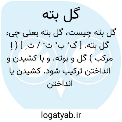 گل بته. [ گ ُ ب ُ ت َ / ت ِ ] ( اِ مرکب ) گل و بوته. و با کشیدن و انداختن ترکیب شود. کشیدن یا انداختن شکل گل و بوته در پارچه یا کاغذ یا چیز دیگر. رجوع به گل و بوته شود.