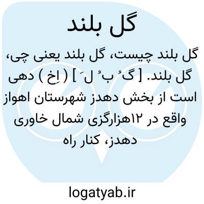 گل بلند. [ گ ُ ب ُ ل َ ] ( اِخ ) دهی است از بخش دهدز شهرستان اهواز واقع در 12هزارگزی شمال خاوری دهدز، کنار راه مالرو گردبندان به سرمازو. هوای آن معتدل و دارای 110 تن سکنه است. آب آن از چشمه و قنات و محصول آن غلات و صیفی و شغل اهالی زراعت و گله داری است. راه مالرو دارد. ( از فرهنگ جغرافیایی ایران ج 6 ).