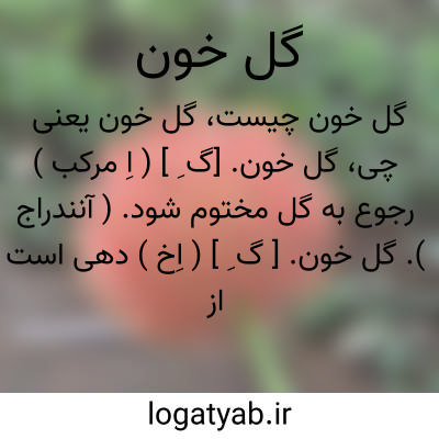 گل خون. [ گ ِ ] ( اِخ ) دهی است از دهستان حومه بخش مرکزی شهرستان شیراز واقع در 15هزارگزی جنوب خاوری شیراز و 2هزارگزی راه فرعی شیراز به خرچول. هوای آن معتدل و دارای 275 تن سکنه است. آب آن از قنات و محصول آن غلات و صیفی است. شغل اهالی زراعت و راه آن مالرو است. ( از فرهنگ جغرافیایی ایران ج 7 ).