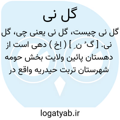 گل نی. [ گ ُ ن ِ ] ( اِخ ) دهی است از دهستان پائین ولایت بخش حومه شهرستان تربت حیدریه واقع در 24هزارگزی جنوب تربت و 12هزارگزی باختر راه شوسه عمومی تربت حیدریه به رشخوار. هوای آن معتدل و دارای 70 تن سکنه است. آب آن از قنات و محصول آن غلات است. شغل اهالی زراعت و مالداری و صنایع دستی زنان آنجا کرباس بافی است. راه مالرو دارد. ( از فرهنگ جغرافیایی ایران ج 9 ).
