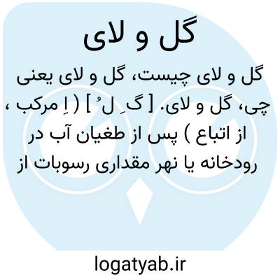 گل و لای. [ گ ِ ل ُ ] ( اِ مرکب، از اتباع ) پس از طغیان آب در رودخانه یا نهر مقداری رسوبات از خود باقی گذارد که آنرا گل و لای خوانند. عَجَل. ( منتهی الارب ): تَسمیل؛ گل و لای آوردن دلو از چاه. ضطیط و ضطط؛ گل و لای سخت. تقن؛ گل و لای چاه.فراش؛ گل و لای خشک شده بر روی زمین. ( منتهی الارب ).