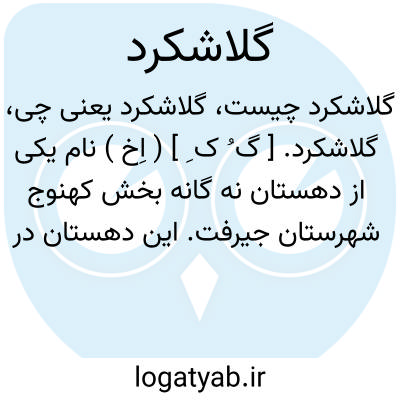 گلاشکرد. [ گ ُ ک ِ ] ( اِخ ) نام یکی از دهستان نه گانه بخش کهنوج شهرستان جیرفت. این دهستان در باختر کهنوج واقع و محدود است از شمال به بخش سبزواران، از خاور به دهستان کهنوج، از جنوب به دهستان رودخانه و از باختر به دهستان صوغان. موقع آن کوهستانی و هوای آن گرم و آب آنجا از رودخانه و قنوات تأمین میشود. محصول آن خرما، غلات و مرکبات آن بخوبی معروف است. از 27 آبادی بزرگ و کوچک تشکیل شده است و جمعیت آن 4090 تن است. مرکز دهستان قریه گلاشکرد و قرای مهم آن: رمکان، درشور، حورمه و پاسفیدان است. ( از فرهنگ جغرافیایی ایران ج 8 ).
