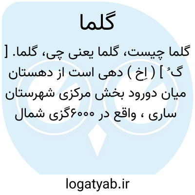 گلما. [ گ ُ ] ( اِخ ) دهی است از دهستان میان دورود بخش مرکزی شهرستان ساری، واقع در 6000گزی شمال خاوری ساری و 4000گزی شمال راه شوسه ساری به بهشهر. هوای آن معتدل و دارای 405 تن سکنه است. آب آن ازچشمه بزرگ و محصول آن برنج، غلات، پنبه و صیفی است.شغل اهالی زراعت و راه آن مالرو است. از دو محل بالاو پائین تشکیل شده است معصوم زاده ای به نام امامزاده محمد درویش دارد. ( از فرهنگ جغرافیایی ایران ج 3 ).