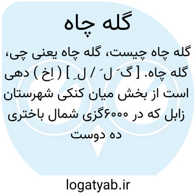 گله چاه. [ گ َ ل َ / ل ِ ] ( اِخ ) دهی است از بخش میان کنکی شهرستان زابل که در 6000گزی شمال باختری ده دوست محمد نزدیک مرز افغانستان به جلگه واقع شده است. هوای آن معتدل و سکنه آن 337 تن است. آب آنجا از رودخانه هیرمند تأمین میشود. محصول آن غلات، لبنیات و شغل اهالی زراعت و گله داری و راه آن مالرو است. ( از فرهنگ جغرافیایی ایران ج 8 ).