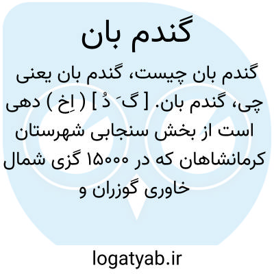 گندم بان. [ گ َ دُ ] ( اِخ ) دهی است از بخش سنجابی شهرستان کرمانشاهان که در 15000 گزی شمال خاوری گوزران و کنار باختری رودخانه مرک واقع شده است. هوای آن سرد و سکنه اش 120 تن است. آب آن از چاه تأمین میشود. محصول آن غلات دیم، لبنیات و شغل اهالی زراعت وگله داری و راه آن مالرو است و در تابستان اتومبیل میتوان برد. دو محل به فاصله 1000 گز به گندم بان علیا و سفلی مشهورند. ( از فرهنگ جغرافیایی ایران ج 5 ).
