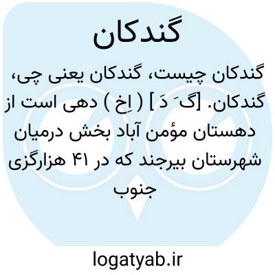 گندکان. [گ َ دَ ] ( اِخ ) دهی است از دهستان مؤمن آباد بخش درمیان شهرستان بیرجند که در 41 هزارگزی جنوب درمیان برسر راه شوسه بیرجند به درح واقع شده است. هوای آن معتدل و سکنه آن 1021 تن است. آب آن از قنات تأمین میشود. محصول آن غلات و شغل اهالی زراعت و راه آن اتومبیل رو است. در این ده طوایف بهلولی، حیدری، جعفر حقدادی سکنی دارند. ( از فرهنگ جغرافیایی ایران ج 9 ).