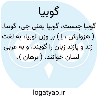 گوبیا. ( هزوارش، اِ ) بر وزن لوبیا، به لغت زند و پازند زبان را گویند، و به عربی لسان خوانند. ( برهان ). گوبیا ( زبان ) «بندهشن چ یوستی ص 222». در پهلوی گوباک یا گویاک به معنی گویا و گوینده و سخن گوست. رجوع شود به باروچا ص 196. ( حاشیه برهان قاطع چ معین ).