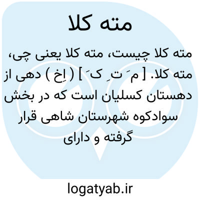 مته کلا. [ م َ ت ِ ک َ ] ( اِخ ) دهی از دهستان کسلیان است که در بخش سوادکوه شهرستان شاهی قرار گرفته و دارای 100 تن سکنه است. ( از فرهنگ جغرافیایی ایران ج 3 ).