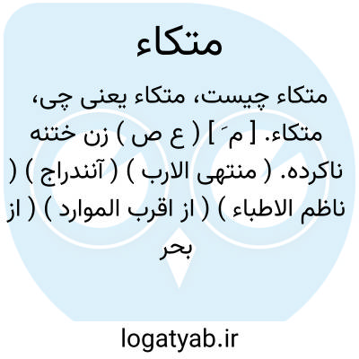 متکاء. [ م َ ] ( ع ص ) زن ختنه ناکرده. ( منتهی الارب ) ( آنندراج ) ( ناظم الاطباء ) ( از اقرب الموارد ) ( از بحر الجواهر ). || زن که هر دو راهش یکی شده باشد. ( منتهی الارب ) ( آنندراج ) ( ناظم الاطباء ) ( از ذیل اقرب الموارد ). || زن که ضبط بول نتواند. ( منتهی الارب ) ( آنندراج ) ( ناظم الاطباء )( از ذیل اقرب الموارد ) ( از بحر الجواهر ). زنی که بول باز نتواند داشت. ( مهذب الاسماء ). || ( اِ ) تلاق زن و بظر. ( ناظم الاطباء ) ( از فرهنگ جانسون ).