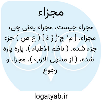 مجزاء. [ م ُ ج َزْ زَ ءْ ] ( ع ص ) جزء جزء شده. ( ناظم الاطباء ). پاره پاره شده. ( از منتهی الارب ). مجزا. و رجوع به مجزا شود.