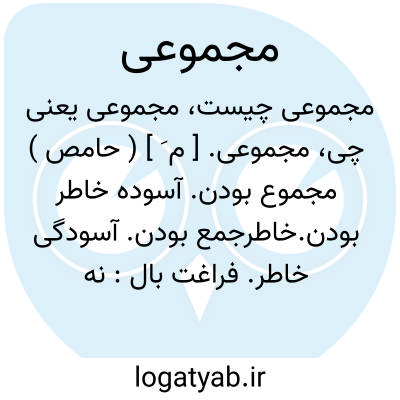 مجموعی. [ م َ ] ( حامص ) مجموع بودن. آسوده خاطر بودن.خاطرجمع بودن. آسودگی خاطر. فراغت بال: