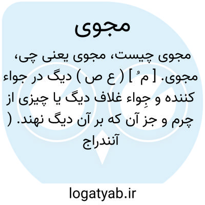 مجوی. [ م ُ ] ( ع ص ) دیگ در جواء کننده و جِواء غلاف دیگ یا چیزی از چرم و جز آن که بر آن دیگ نهند. ( آنندراج ). کسی که آویزان می کند دیگ را. ( ناظم الاطباء ).