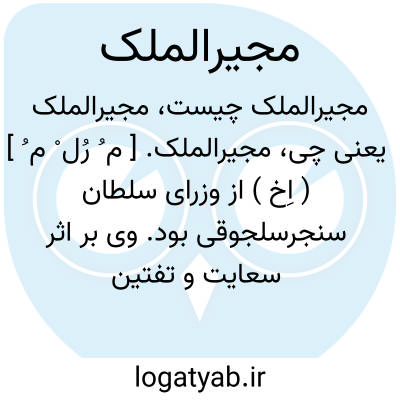 مجیرالملک. [ م ُ رُل ْ م ُ ] ( اِخ ) از وزرای سلطان سنجرسلجوقی بود. وی بر اثر سعایت و تفتین فخرالملک بن نظام الملک مورد خشم سلطان سنجر واقع و محبوس گردید و پس از مصادره اموال به عنوان رسالت به خدمت بهرامشاه غزنوی فرستاده شد و در دربار بهرامشاه غزنوی روزگار می گذرانید تا درگذشت. ( از دستورالوزراء ص 187-188 ).