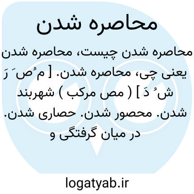 محاصره شدن. [ م ُص َ رَ ش ُ دَ ] ( مص مرکب ) شهربند شدن. محصور شدن. حصاری شدن. در میان گرفتگی و بند شدگی راه واقع شدن.