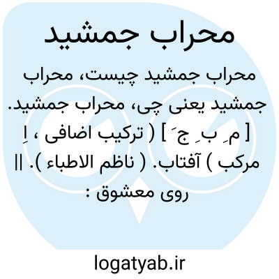 لغت نامه دهخدا محراب جمشید. [ م ِ ب ِ ج َ ] ( ترکیب اضافی، اِ مرکب ) آفتاب. ( ناظم الاطباء ). || روی معشوق: برافکن برقع از محراب جمشیدکه حاجتمند برقع نیست خورشید.نظامی.|| آتش. || جام جهان نما. ( ناظم الاطباء ).
