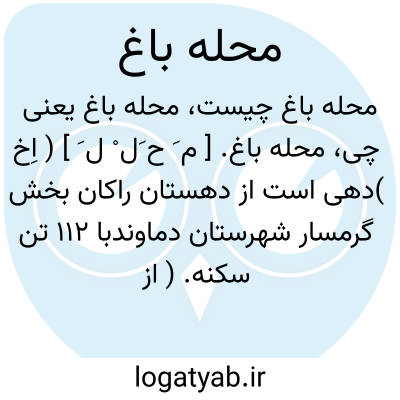 محله باغ. [ م َ ح َل ْ ل َ ] ( اِخ )دهی است از دهستان راکان بخش گرمسار شهرستان دماوندبا 112 تن سکنه. ( از فرهنگ جغرافیایی ایران ج 1 ).