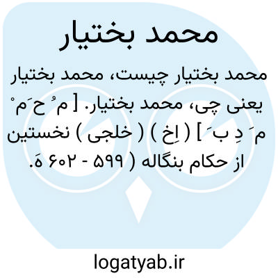 محمد بختیار. [ م ُ ح َم ْ م َ دِ ب َ ] ( اِخ ) ( خلجی ) نخستین از حکام بنگاله ( 599 - 602 هَ. ق. ). ( معجم الانساب و الاسرات زامباور ص 426 ).