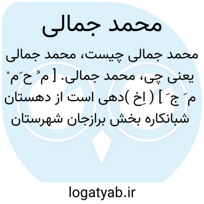 محمد جمالی. [ م ُ ح َم ْ م َ ج َ ] ( اِخ )دهی است از دهستان شبانکاره بخش برازجان شهرستان بوشهر، واقع در 33هزارگزی شمال باختر برازجان کنار راه فرعی برازجان به گناوه با 180 تن سکنه. آب آن از چاه تأمین میشود. ( از فرهنگ جغرافیایی ایران ج 7 ).