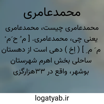 محمدعامری. [ م ُ ح َم ْ م َ م ِ ] ( اِخ ) دهی است از دهستان ساحلی بخش اهرم شهرستان بوشهر، واقع در 33هزارگزی جنوب باختری اهرم و2هزارگزی ساحل دریا با 507 تن سکنه. آب آن از چاه وراه آن فرعی است. ( از فرهنگ جغرافیایی ایران ج 7 ).