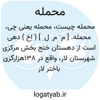 محمله. [ م َ م ِ ل ِ ] ( اِخ ) دهی است از دهستان خنج بخش مرکزی شهرستان لار، واقع در 138هزارگزی باختر لار در دامنه شمال کوه زنگو، با 143 تن سکنه. آب آن از چاه و راه آن مالرو است. ( از فرهنگ جغرافیایی ایران ج 7 ).