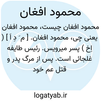 محمود افغان. [ م َ دِ اَ ] ( اِخ ) پسر میرویس. رئیس طایفه غلجائی است. پس از مرگ پدر و قتل عم خود عبداﷲ وی افغانان ایرانی را در 1120 مغلوب کرد و سردار ایشان اسداﷲخان را کشت و این عمل را در چشم درباریان اصفهان خدمتگزاری جلوه داد. محمود در 1124 قصد تسخیر ایران کرد و به کرمان رسید لیکن لطفعلی خان والی فارس عم فتحعلی خان وزیر اعظم او را سخت شکست داد و به قندهار گریزاند. در سال 1124 هَ. ق. محمود بار دیگر از راه سیستان و کرمان و یزد به اصفهان حمله نمودو در 1124 آنجا را گرفت. وی در 1127 هَ. ق. به قتل رسید. رجوع به تاریخ عمومی اقبال ص 703 و 804 شود.