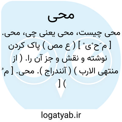 محی. [ م َح ْی ْ ] ( ع مص ) پاک کردن نوشته و نقش و جز آن را. ( از منتهی الارب ) ( آنندراج ).