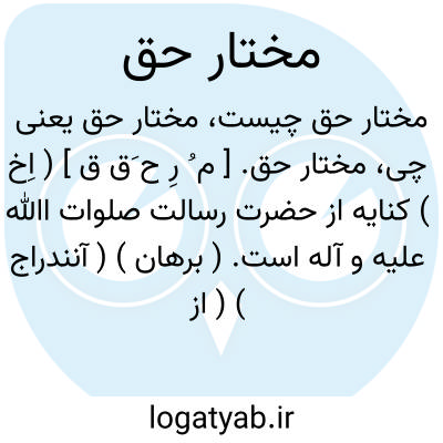 مختار حق. [ م ُ رِ ح َق ق ] ( اِخ ) کنایه از حضرت رسالت صلوات اﷲ علیه و آله است. ( برهان ) ( آنندراج ) ( از ناظم الاطباء ):