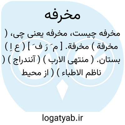 ( مخرفة ) مخرفة. [ م َ رَ ف َ ] ( ع اِ ) بستان. ( منتهی الارب ) ( آنندراج ) ( ناظم الاطباء ) ( از محیط المحیط ). || رسته میان دو قطار خرمابن که خرماچین از هر یک از آنهاکه خواهد چیدن تواند. ( منتهی الارب ) ( از اقرب الموارد )( آنندراج ) ( ناظم الاطباء ). ج، مَخارِف. ( اقرب الموارد ). || راه فراخ. ( منتهی الارب ) ( از اقرب الموارد ) ( آنندراج ). راه راست و فراخ. ( ناظم الاطباء ). و رجوع به مخرف شود. || ( اِمص ) فساد عقل از پیری و کلانسالی. ( از اقرب الموارد ) ( از محیط المحیط ).
