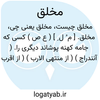 مخلق. [ م ُ ل ِ ] ( ع ص ) کسی که جامه کهنه پوشاند دیگری را. ( آنندراج ) ( از منتهی الارب ) ( از اقرب الموارد ). آنکه می پوشاند جامه کهنه را به دیگری. ( ناظم الاطباء ). || کهنه کننده جامه. ( آنندراج ) ( از منتهی الارب ) ( از اقرب الموارد ). آنکه کهنه می کند جامه را. || جامه کهنه شده و کهنه کرده. ( ناظم الاطباء ). رجوع به اِخْلاق شود.